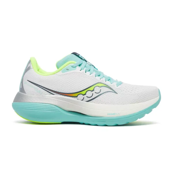 - Speedroll-Technologie: Eine der aufregendsten Innovationen dieses Schuhs ist die Speedroll-Technologie, die entwickelt wurde, um eine schnelle und flüssige Fahrt zu fördern, genau wie die, die wir während unserer täglichen Trainingseinheiten suchen. Dank der ¾-langen Carbonfaserplatte ermöglicht dieser Schuh eine natürliche Beschleunigung, ohne den Komfort zu beeinträchtigen. Darüber hinaus ist die Rille im hinteren Teil des Schuhs so konzipiert, dass sie den Zehenabdruck verbessert und für weichere Landungen sorgt, ohne jemals an Geschwindigkeit zu verlieren.