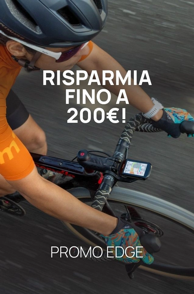 Con il cashback Garmin puoi risparmiare fino a 200€ sui ciclocomputer Edge e portarti a casa uno strumento più preciso, più completo e pronto per ogni uscita.