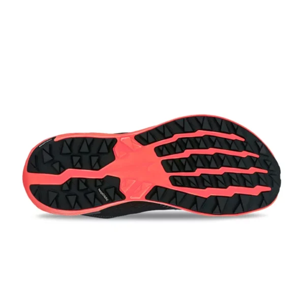 La suola MaxTrac™, creata per dominare ogni tipo di superficie, offre una trazione aggressiva ma fluida, assicurando il massimo grip su fango, rocce bagnate, sentieri scivolosi e salite impegnative. L’ampio puntale permette alle dita di muoversi liberamente anche durante lunghe percorrenze, mentre il mesopiede aderente fornisce stabilità e reattività.